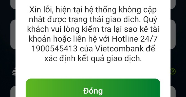 Lỗi nạp lâu do ngân hàng Vietcombank trả giao dịch chậm